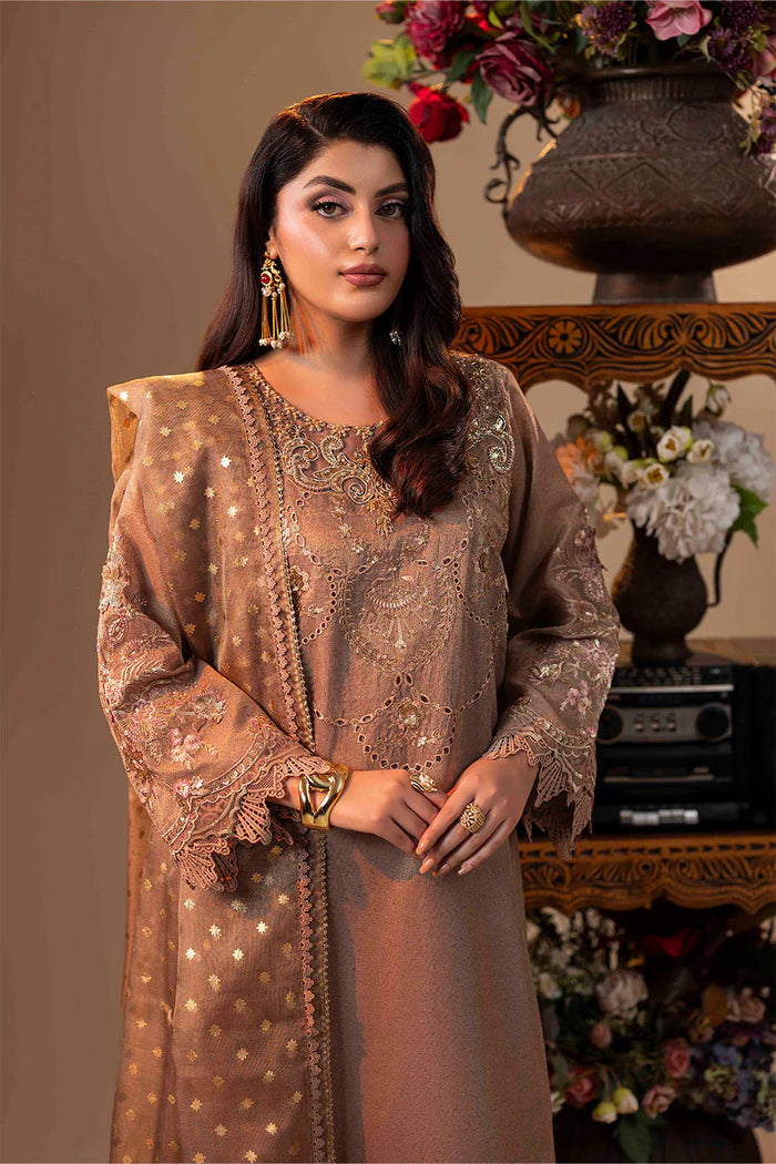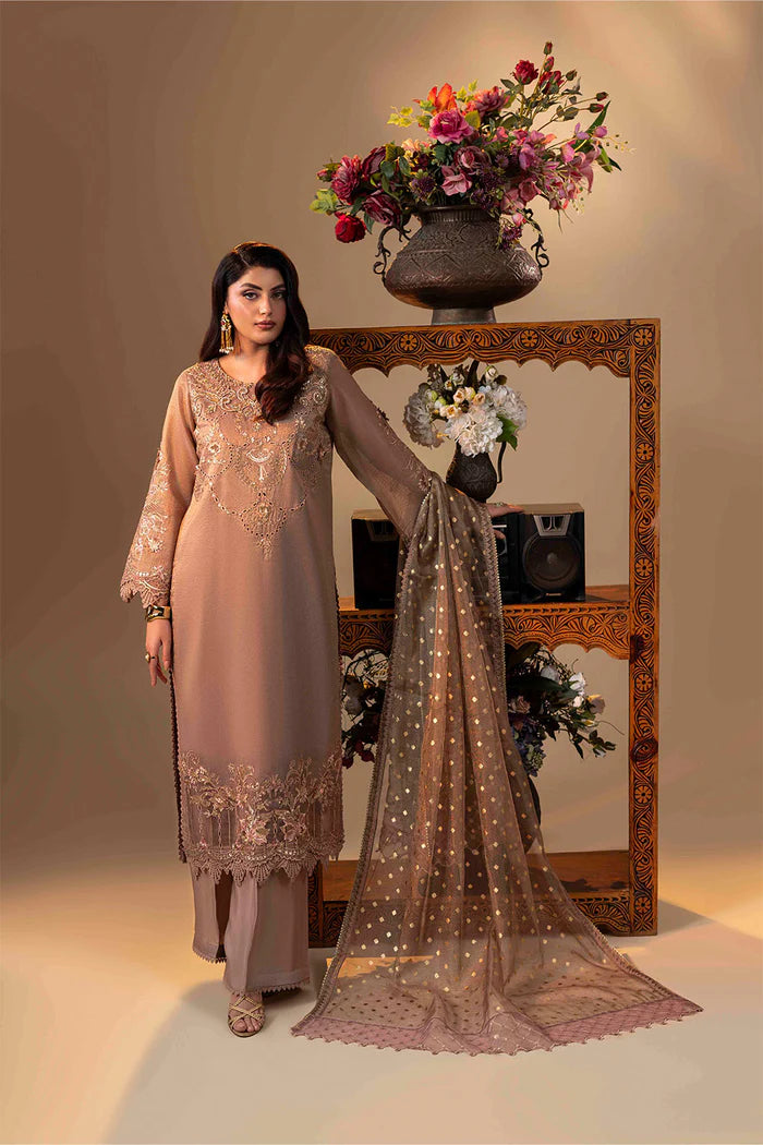 - Karandi Embroidered Sleeves finished with organza embroidered border & 3D flowers