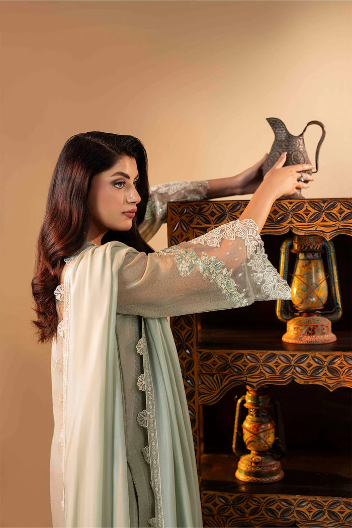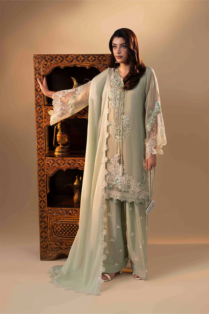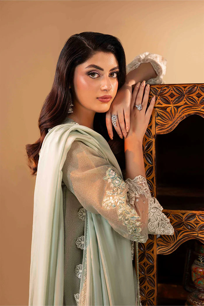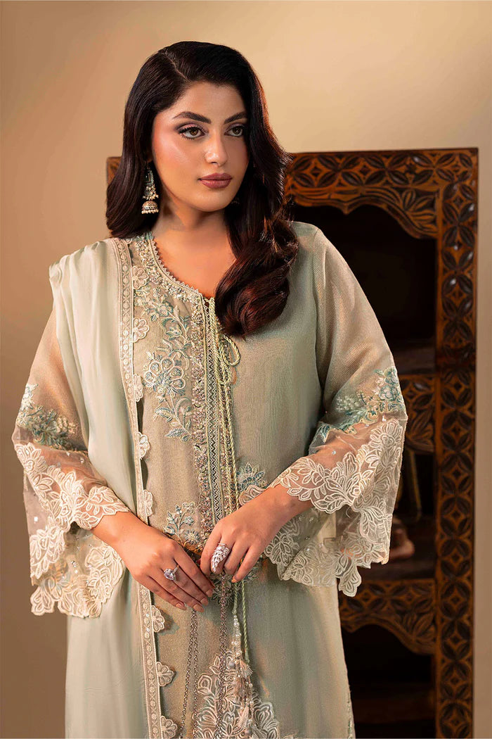 - Karandi Embroidered Sleeves finished with organza embroidered border