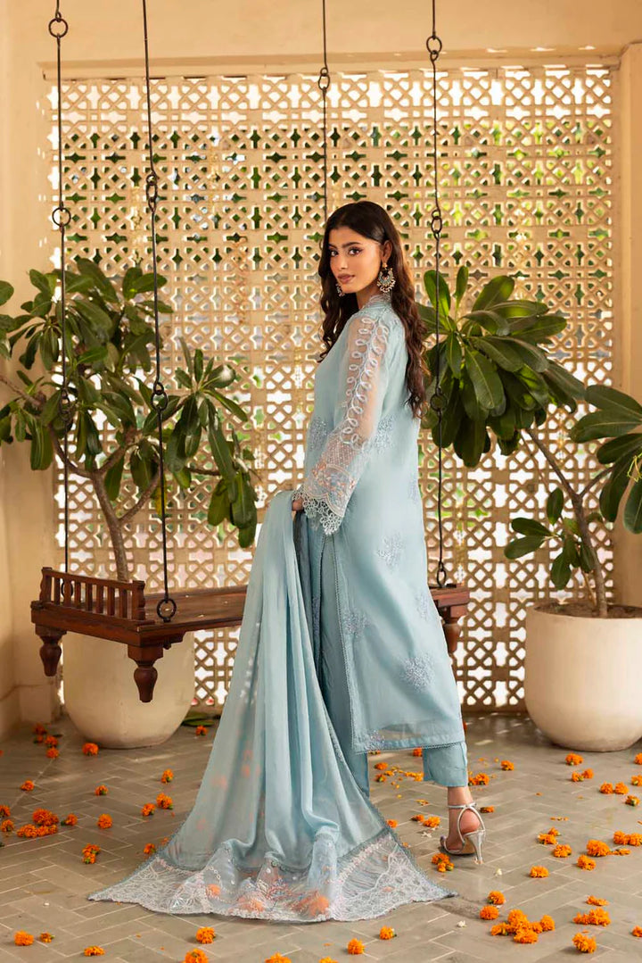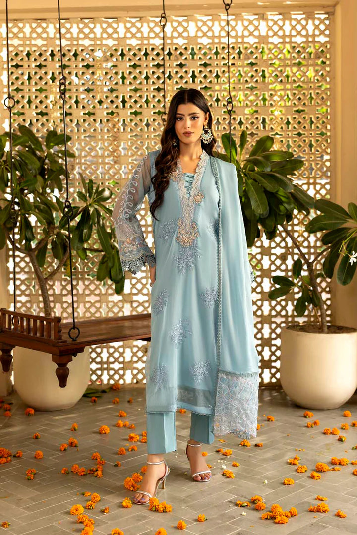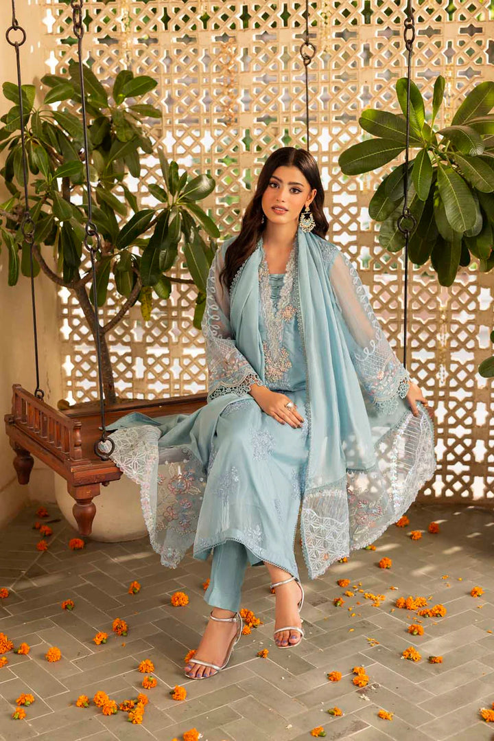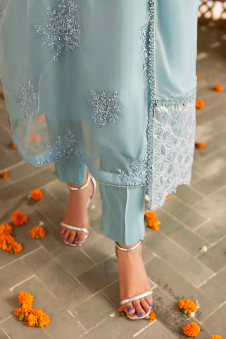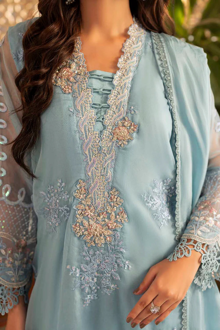 - Organza embroidered shirt neckline finished with hand embellished 3D motifs.