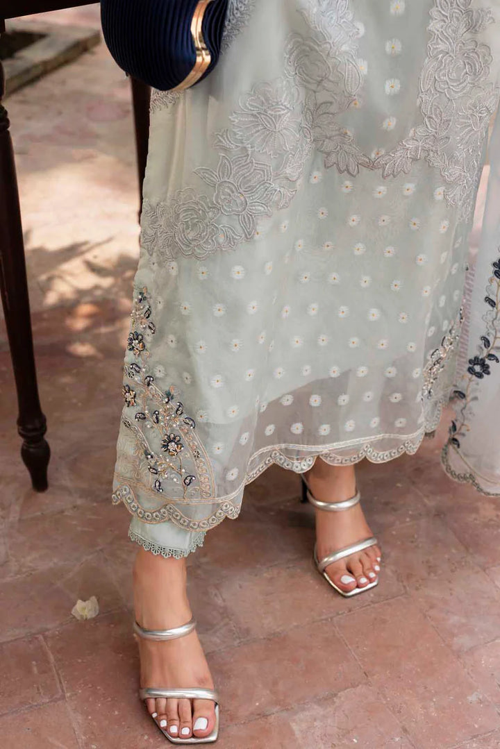 - Organza embroidered & hand Embellished shirt .jacquard organza daman which is finished with intricate corner motifs.