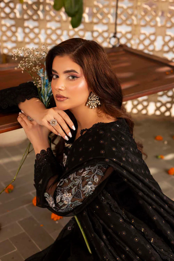 - Organza embroidered sleeves finished with embroidered border & Lace
