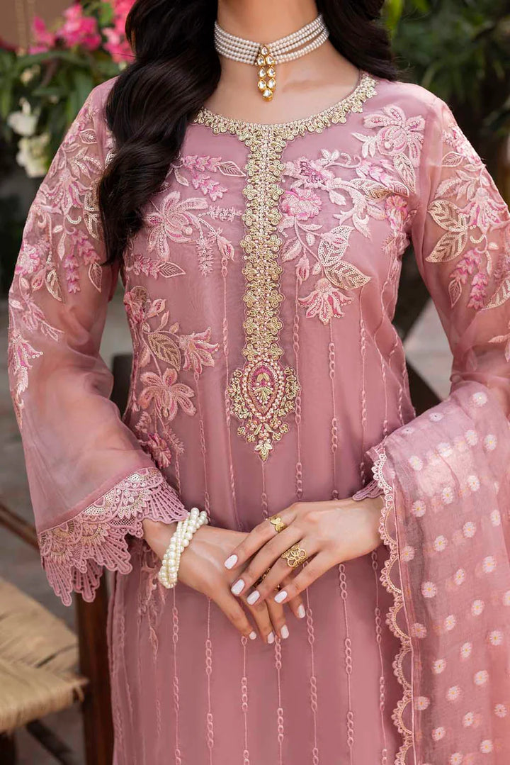- Organza embroidered sleeves finished with embroidered border & Lace