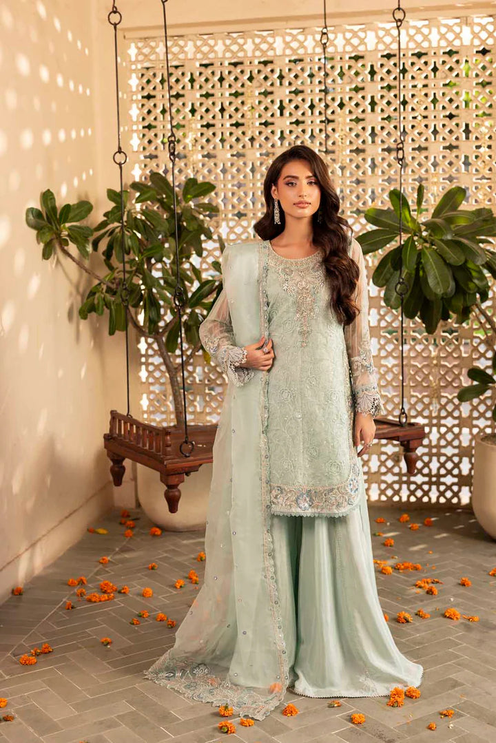 - Organza embroiderd & hand Embelished shirt which is finished with composed Daman Nd hem border.