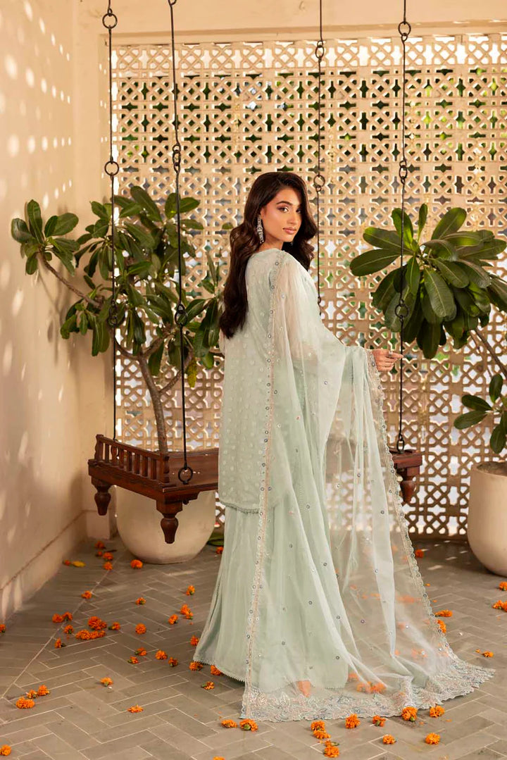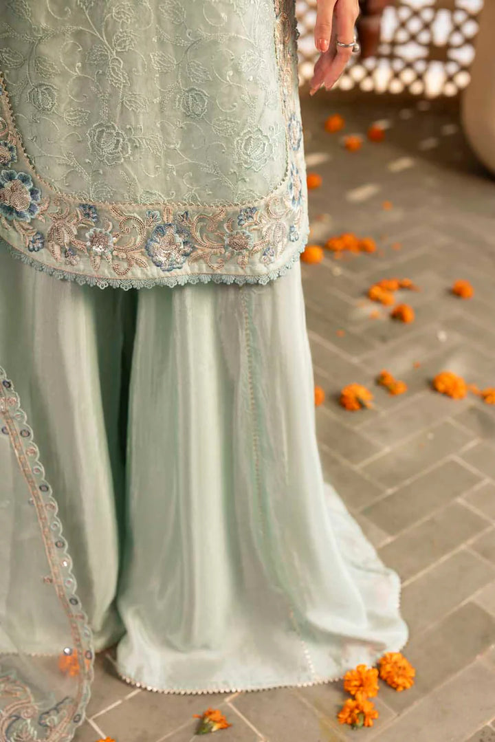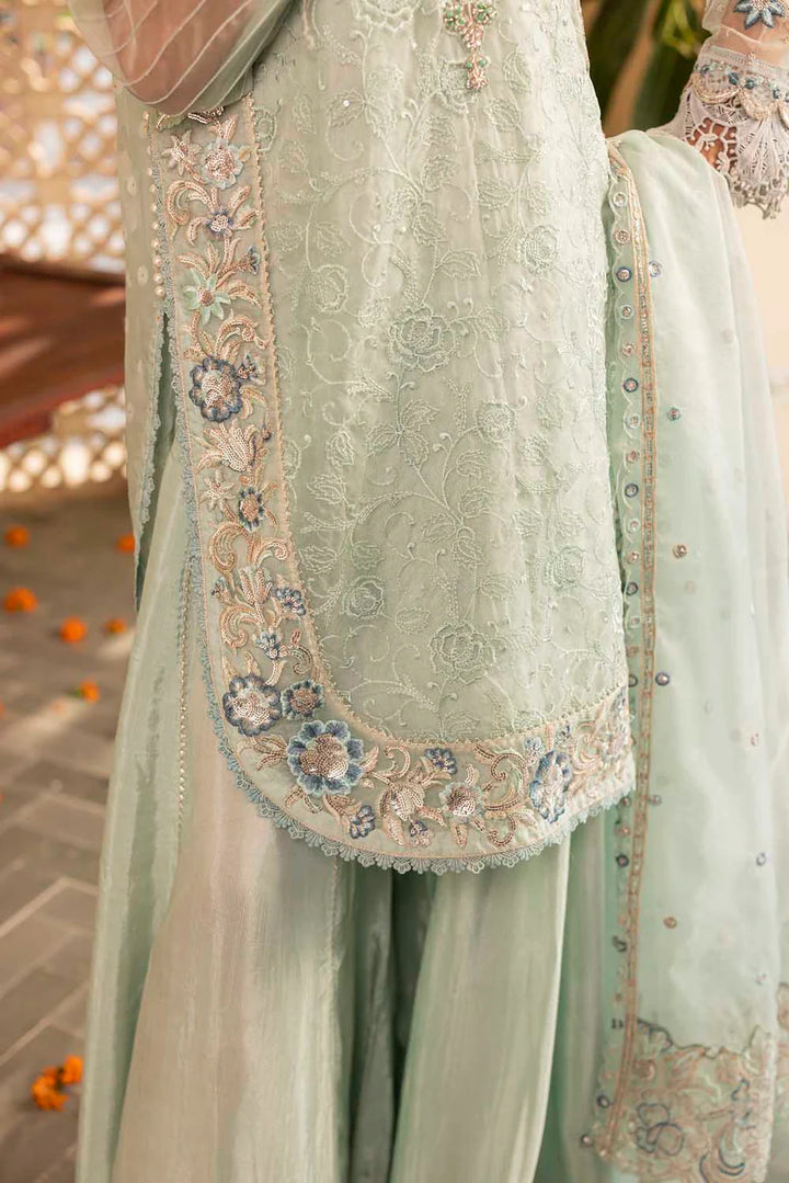 - Organza embroidered sleeves finished with embroidered motif & Lace