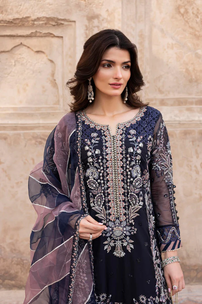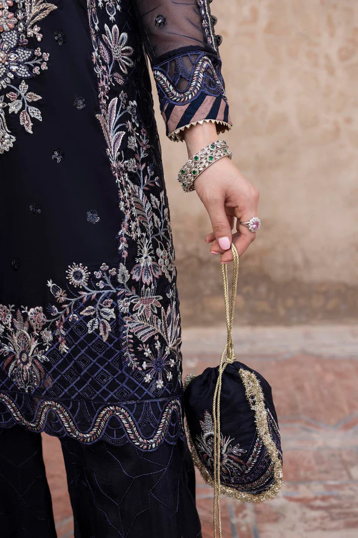 Shirt: Organza embroidered shirt with hand-embellished neckline.