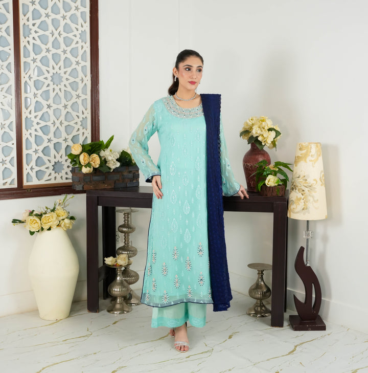 This outfit is perfect for any special occasion, combining traditional craftsmanship with contemporary style.