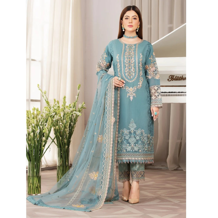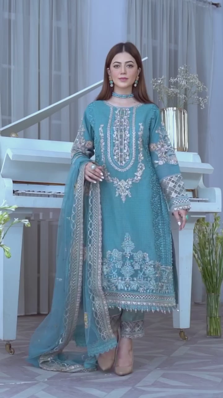 Embroidered dupatta finished all four sides with a beautiful Scalloped Embroidered border, hand embellished with crystal hangings.