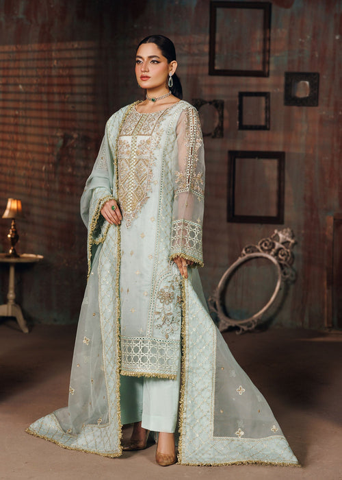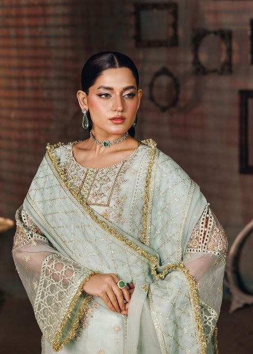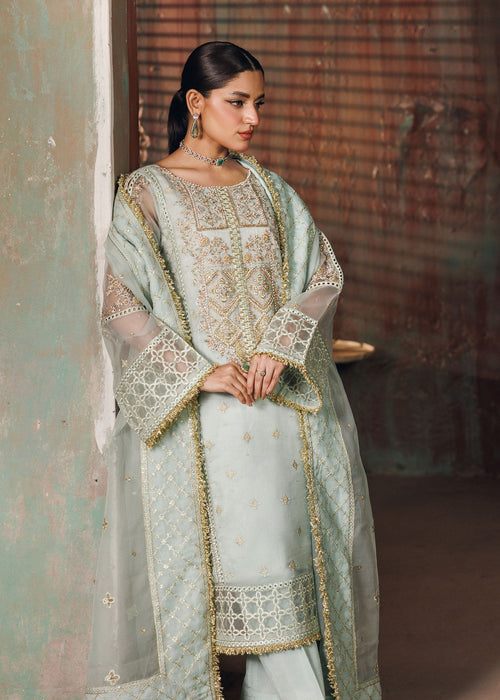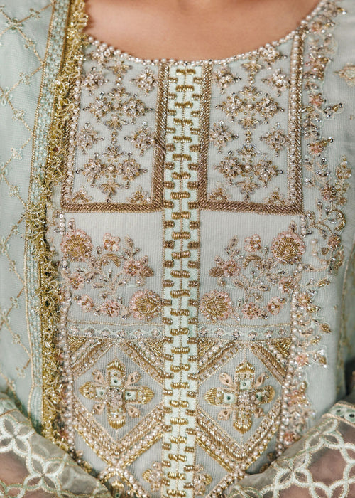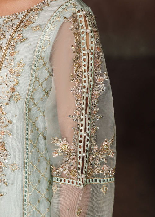 Additional Description: Front open long jacket with straight trouser, paired with crushed dupatta; this outfit competes the look with embroidery and light embellishment