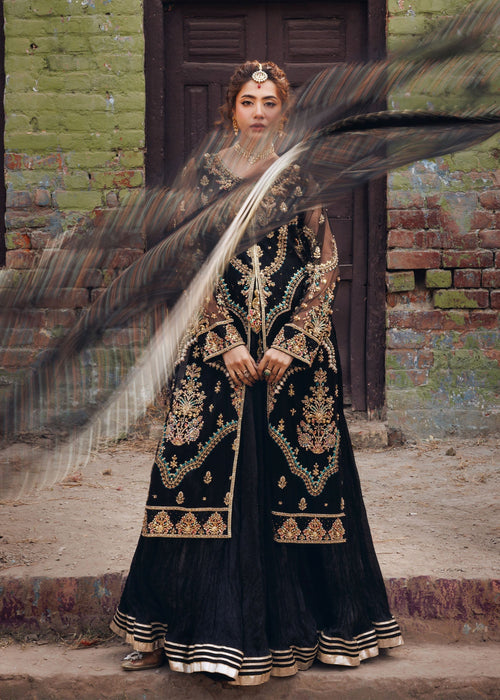Additional Description: Front open jacket with crushed maxi paired with net duppata, an outfit completes the look with heavy embroidery and embellishment.