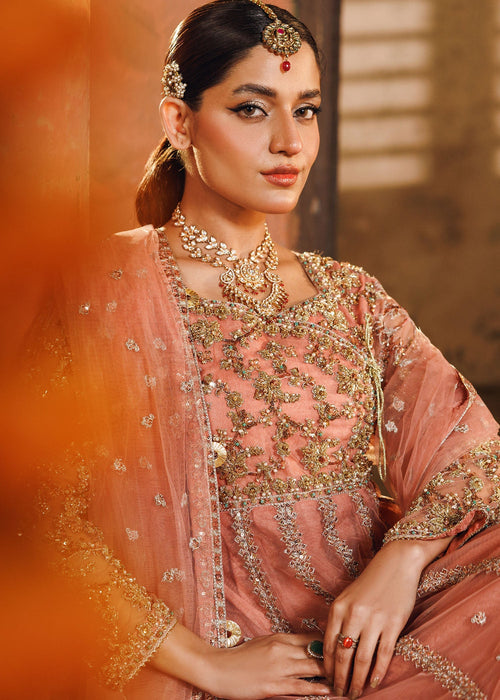Additional Description: Double Layered Maxi paired with net duppata, an outfit completes the look with heavy embroidery and embellishment.