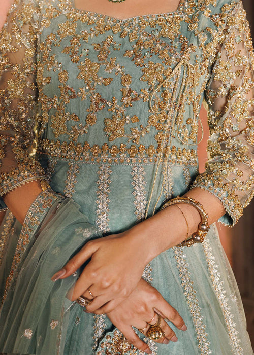 Additional Description: Double Layered Maxi paired with net duppata, an outfit completes the look with heavy embroidery and embellishment.
