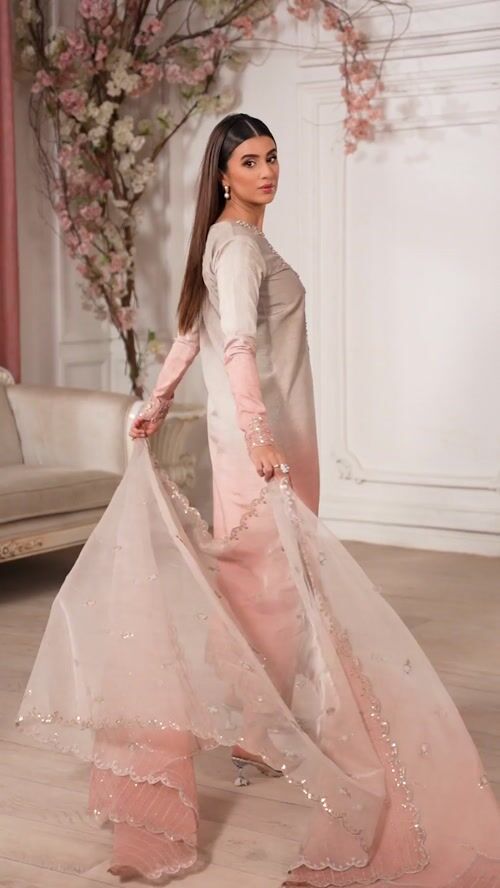 Additional Description: Long Shirt with Straight pants paired with organza duppata, an outfit completes the look with heavy embroidery and embellishment.