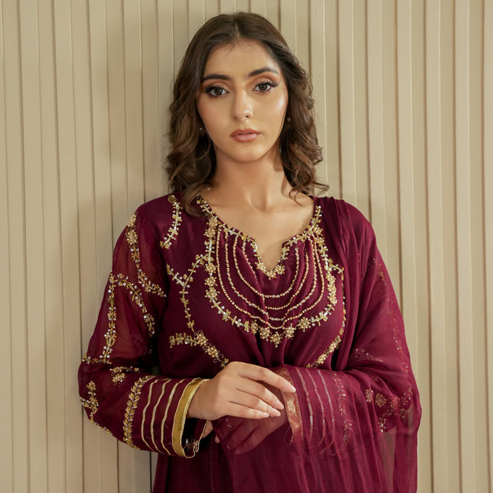 This outfit is perfect for any special occasion, combining traditional craftsmanship with contemporary style.