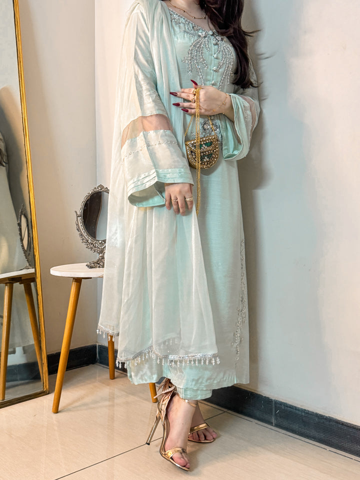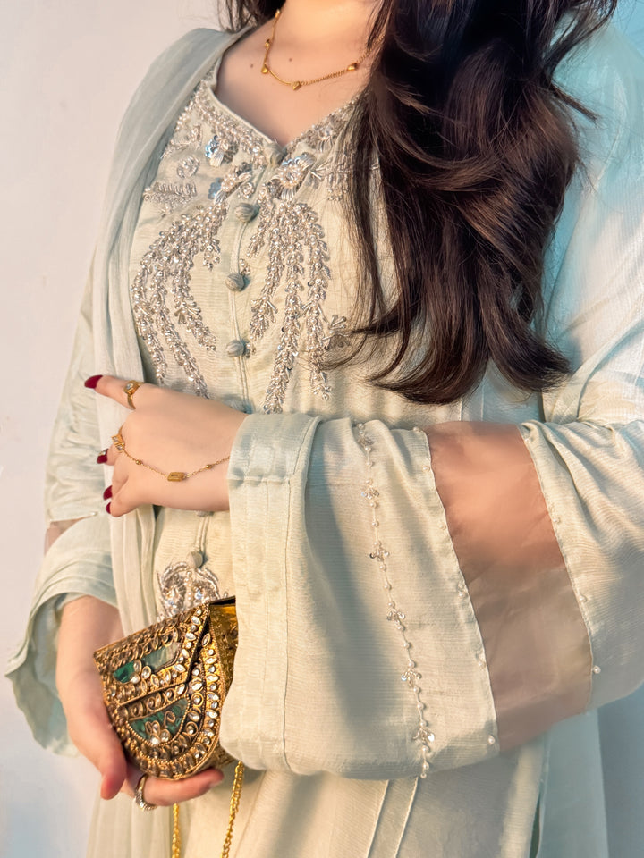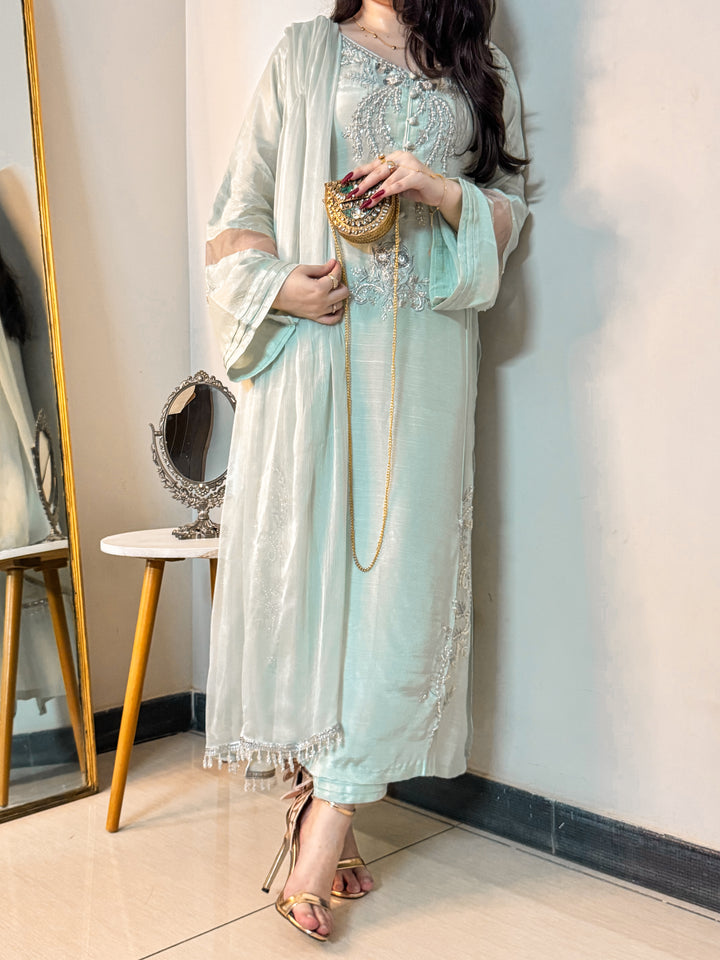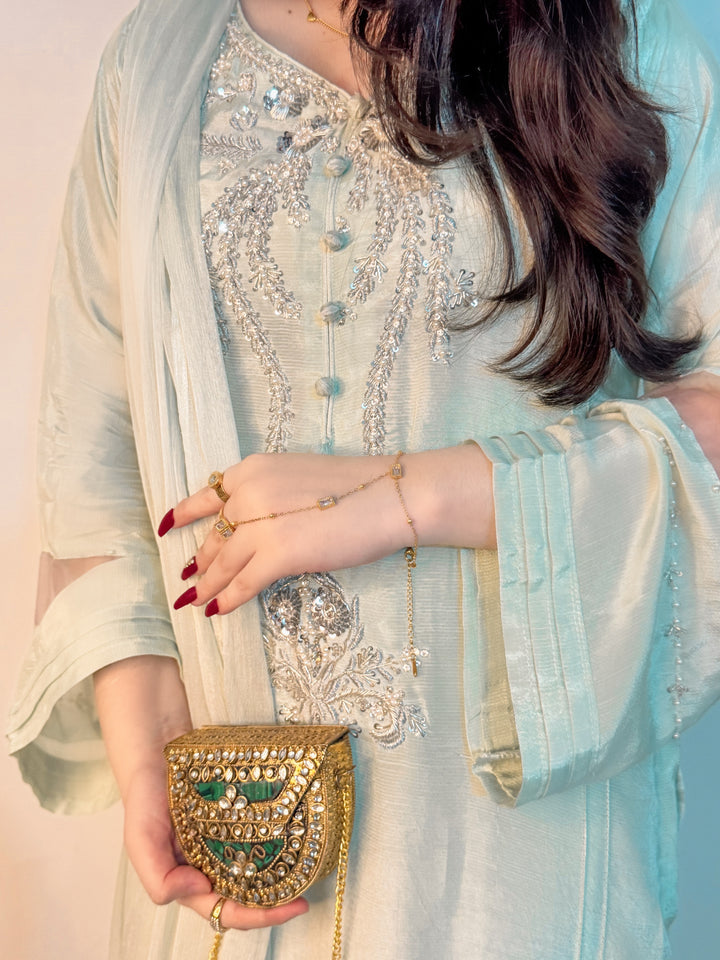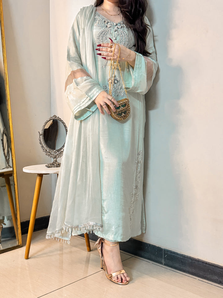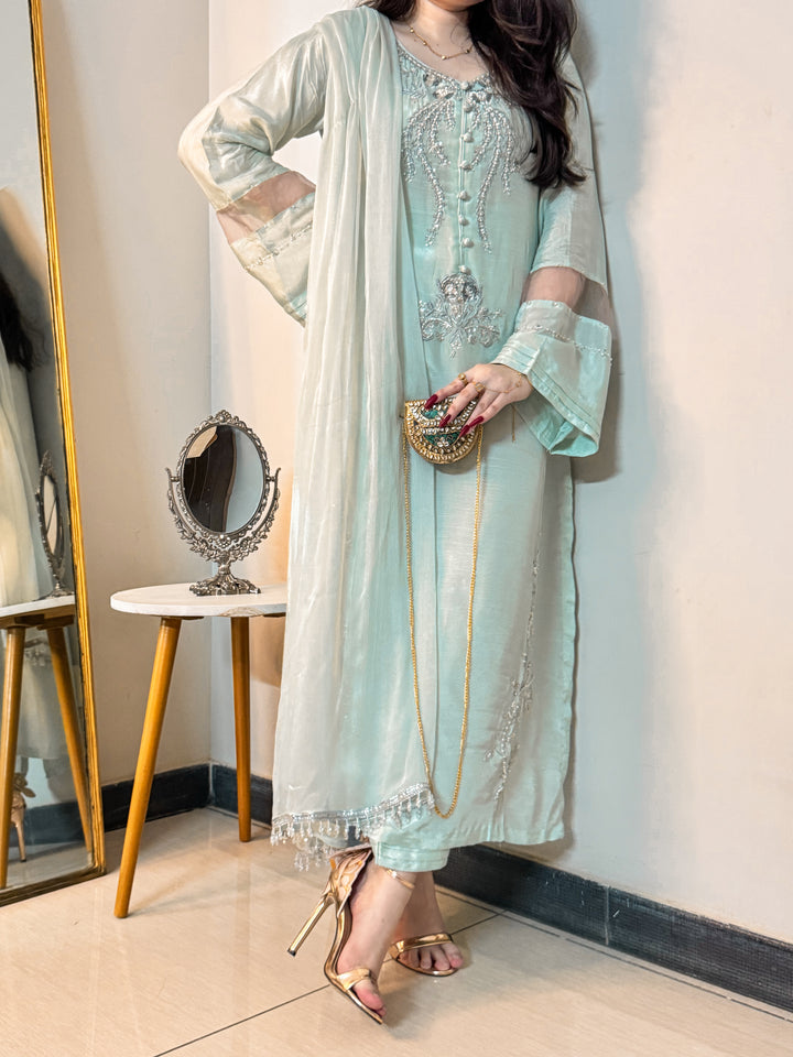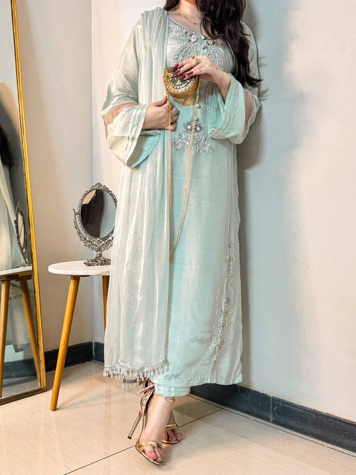 This outfit is perfect for any special occasion, combining traditional craftsmanship with contemporary style.