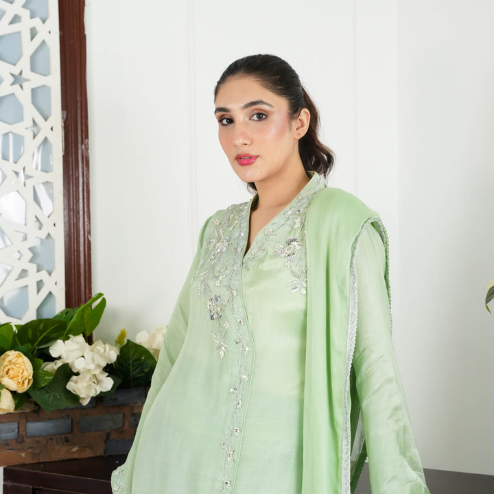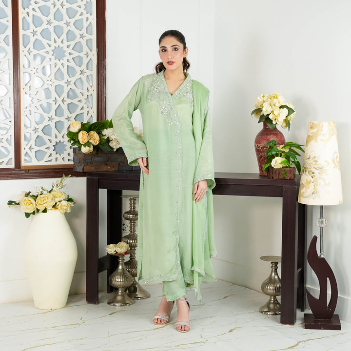 This outfit is perfect for any special occasion, combining traditional craftsmanship with contemporary style.
